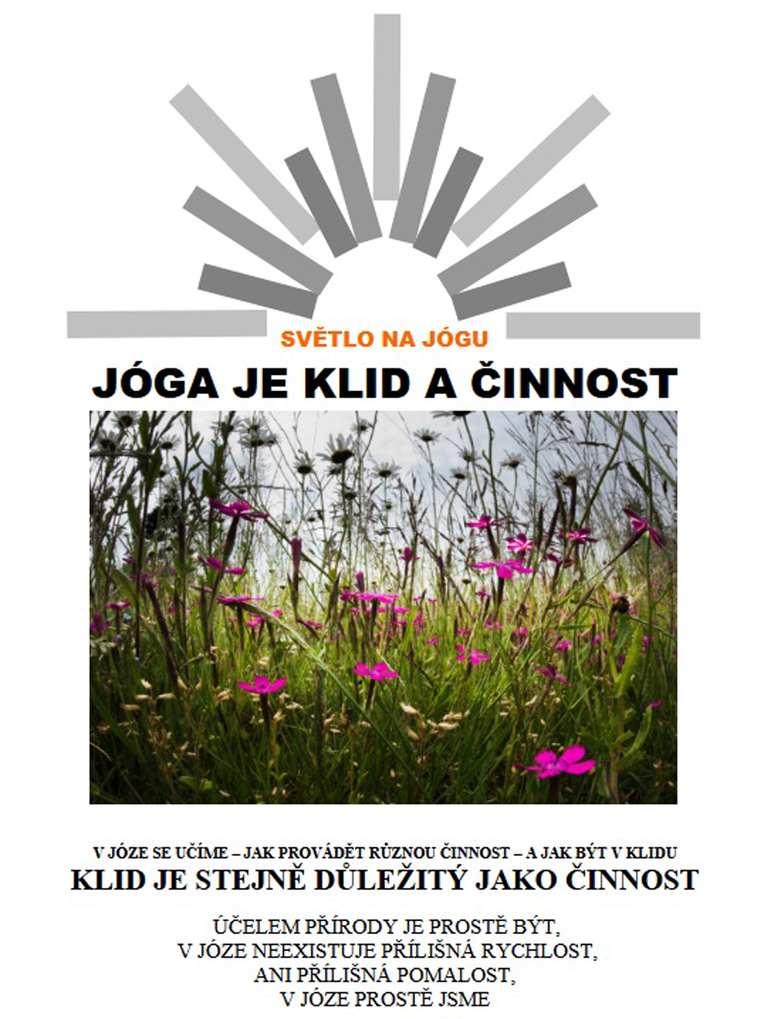 Jóga nás učí, že vnitřní klid není něco, co bychom hledali venku, ale že je již přítomen uvnitř každého z nás – jen se k němu musíme dostat skrze praxi.